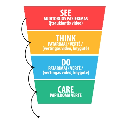 - Engagement (Įsitraukimas): Tikslas – komentarai, „like“ arba video peržiūros.