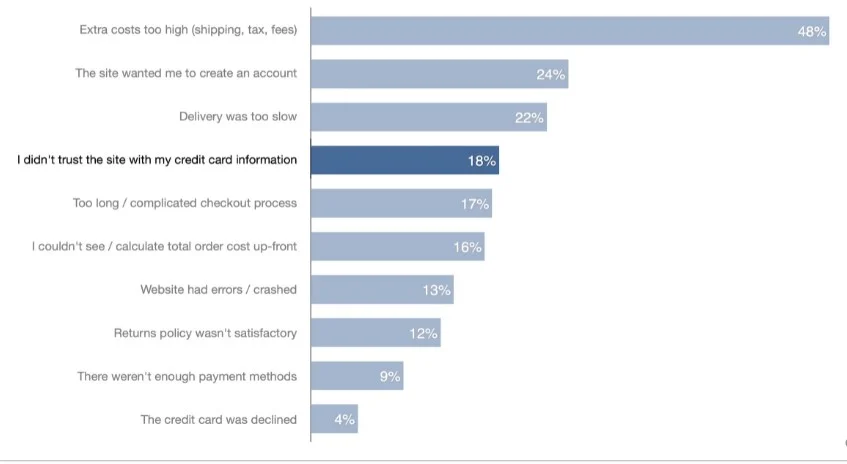 „Baymard“ tyrimas rodo, kad 18% vartotojų nutraukė pirkimą APMOKĖJIMO dalyje, kadangi puslapis atrodė nepatikimai.